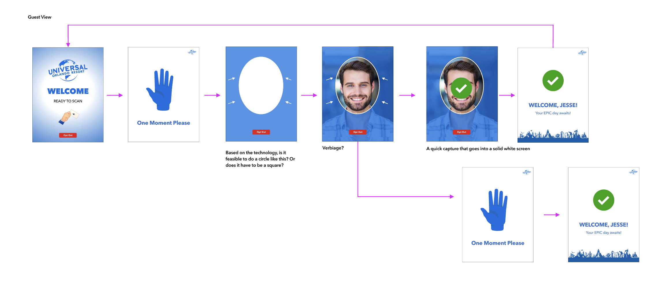 With the successful implementation of my Photo Validation UX work, the average time per entrance was cut down from 60 seconds per Guest to around 10 seconds per Guest.